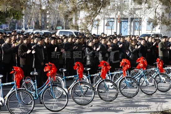 2014年2月28日,焉耆回族自治县在县政府大院,为第一批赴基层开展工作的400余名干部送行。
