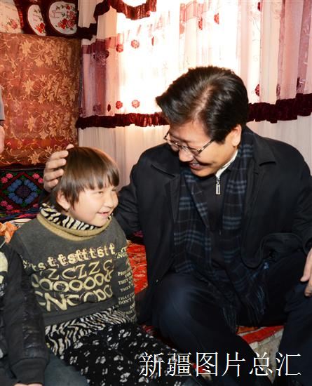 又向山里驱车近20公里,张春贤来到另一户牧民马合木提的家,周围的几户牧民赶了过来,大家一起围坐在温暖的炕头上,拉起了家常。张春贤说,今年冬天格外冷,降雪也比平常多,我们专程来看看大家,这个冬天有没有受冻,牲畜的饲草料够不够,还有什么困难?