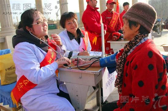 3月1日,库车县塔里木运输公司的青年志愿者在为社区居民进行体检。