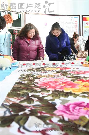当日,哈密市石油新城街道北区社区开展“展风采 迎三八”活动。展出了社区居民十字绣,字画等作品。为居民提供了一个展示自我和交流的平台。
