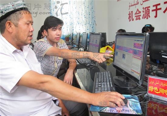2013年8月22日,新疆阿克苏地区沙雅县海楼乡枣农从互联网上联系红枣销售客户。今年该县在全县13个乡镇各建设1个“绿色网吧”,免费向农民开放,为农牧民致富搭建信息平台。
