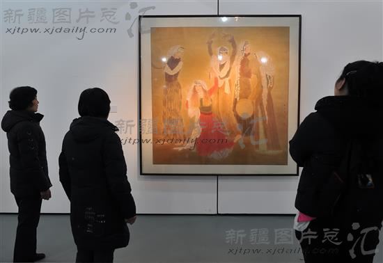 2014年3月3日,市民在乌鲁木齐7坊街创意产业集聚区新疆当代美术馆观看美术作品。