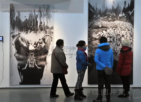 2014年3月3日,市民在乌鲁木齐7坊街创意产业集聚区新疆当代美术馆观看美术作品。