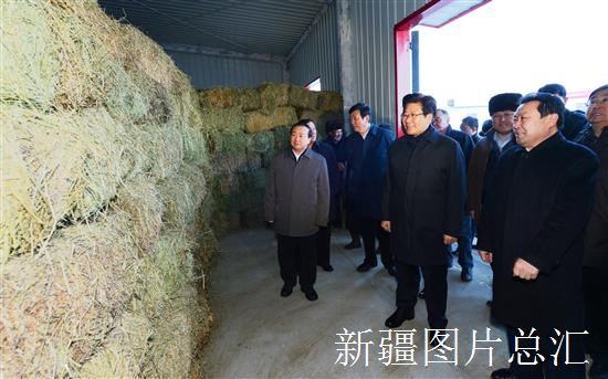 1月7日,中共中央政治局委员、自治区党委书记张春贤在托里县库甫乡冬季草料储备库考察。