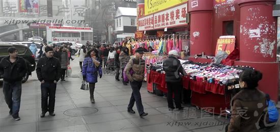 2014年3月4日,乌鲁木齐市小西门的占道经营商户在招徕顾客。