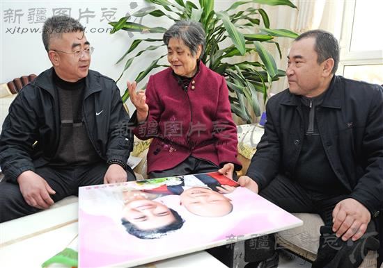 2014年3月7日,库尔勒市下派建设街道康都社区工作组干部,在74岁的空巢老人霍永仙(中)家里走访。