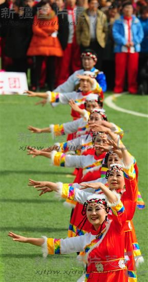 2014年3月7日,新疆生产建设兵团第一师举办庆三八文艺演出,千余名当地群众演员载歌载舞,喜迎三八妇女节,展现兵团人的精神风貌。