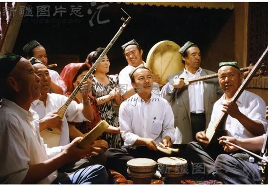 吐峪沟的民间乐手在演奏“木卡姆”。