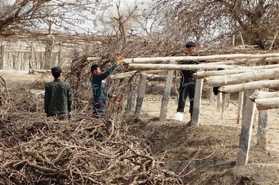 2014年3月8日,新疆吐鲁番市葡萄乡木纳尔村的农民准备将埋在地下的葡萄藤挖出来,搭上葡萄架。