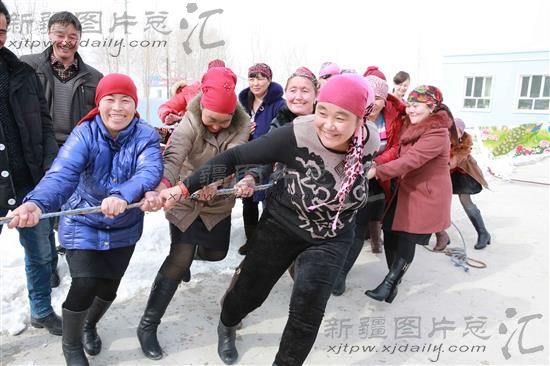 2014年3月8日,富蕴县杜热乡索依勒特村举办庆三八拔河比赛。