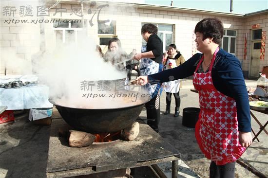 周生国夫妇邀请亲属、朋友、同学来家里,按照巴里坤饮食传统文化习惯,给客人们精心制作了一道巴里坤地方风味大餐。