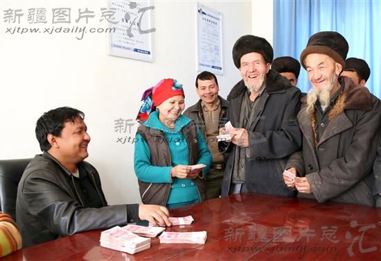2014年3月11日,新疆阿克苏地区库车县齐满镇齐满村村民在领2014年安居富民房补贴款。齐满镇今年新建安居富民房1053户,每户补助为3.55万元,目前第一批补贴款为5000元/户,已经全部到位。据了解,今年库车县新建安居富民房7820户,中央和地方资金补助投入为27761万元。