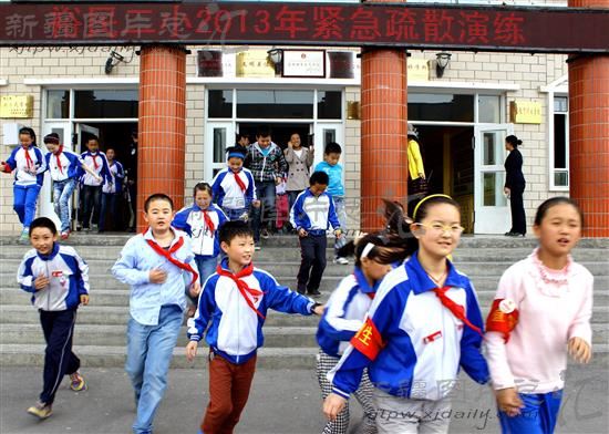 2014年3月12日,新疆塔城地区裕民县第二小学的师生进行防震减灾紧急疏散演练。近日,裕民县各级中小学校积极组织开展防震减灾紧急疏散演练活动,在派出所民警的组织和指导下,演练活动进一步提高了师生们在紧急避险、逃生自救及应急处置的意识和应变能力,强化了校园的安全管理。