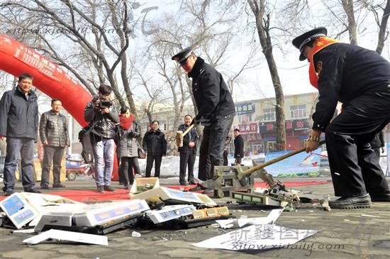 2014年3月14日,执法人员对收缴的“黑心秤”进行处理。