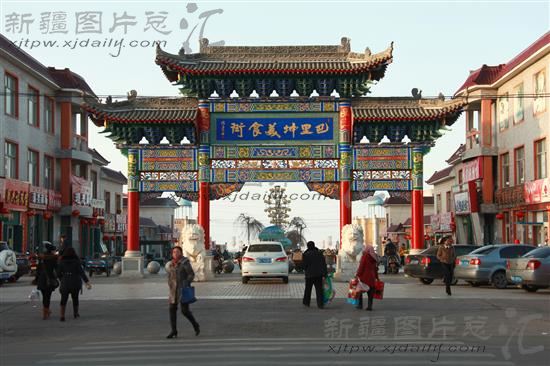 巴里坤古城的美食一条街牌楼(摄于2014年3月12日)。