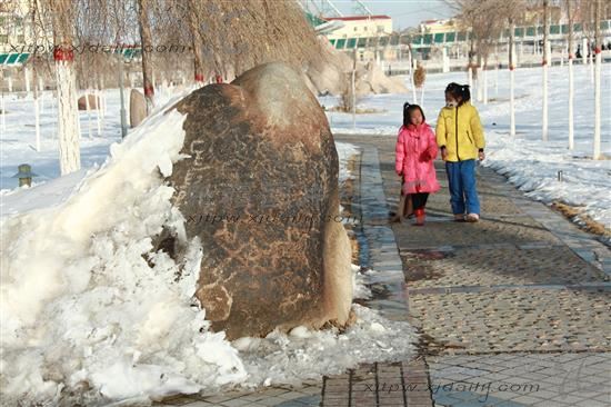巴里坤生态园内的岩画,是巴里坤游牧民族的文化体现(摄于2014年3月12日)。