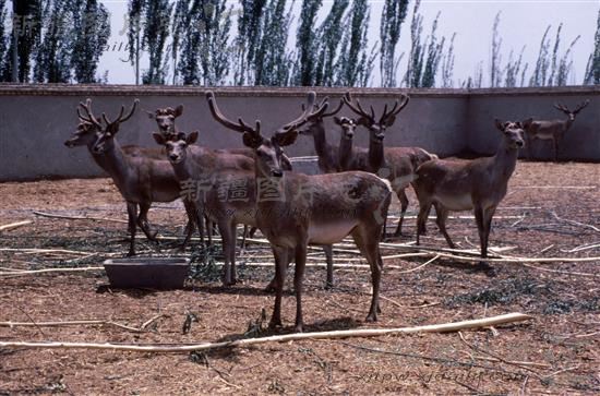 新疆生产建设兵团第二师29团养殖户养殖的塔里木马鹿(摄于1997年5月)。