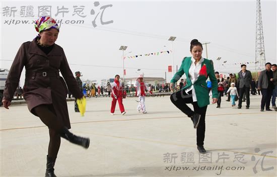 2014年3月21日,各族群众在进行踢毽子比赛。