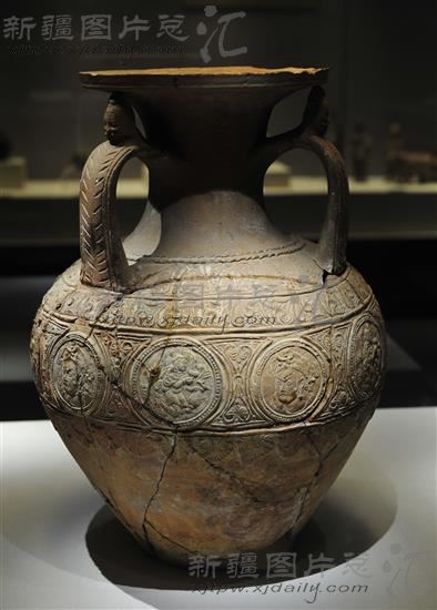 三耳压花陶罐 北朝 新疆博物馆