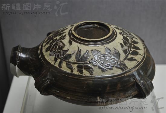 黑釉剔刻花四系扁壶 西夏 宁夏博物馆