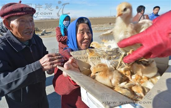 当日,巴里坤哈萨克自治县大河镇的农民领取到政府免费发放的鸡苗。今年,该县安排扶贫开发项目资金140万元,春季培养35万羽鸡苗,面向农牧区群众免费发放。