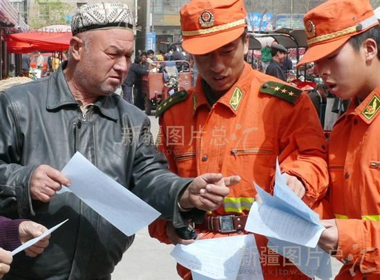 2008年4月28日,武警官兵向群众讲解森林防火常识。当天上午,武警新疆森林总队巴音郭楞蒙古自治州支队抽调精兵强将组成执勤分队,奔赴和静县巴仑台镇“驻扎守护”8700公顷森林,为林区安全筑起“防火墙”。