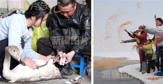 关键字:新疆 生产建设兵团 农八师 石河子总场 天鹅 夫妇俩 救助 投放食物 湿地 保护野生动物 自然和谐