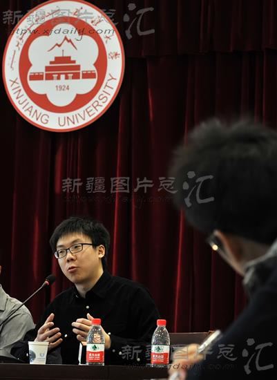 2014年3月31日,“我的中国梦——奋斗的青春最美丽”分享团成员在为新疆大学学生讲述自己的奋斗历程。