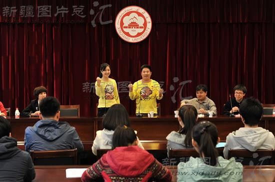 2014年3月31日,“我的中国梦——奋斗的青春最美丽”分享团成员在为新疆大学学生讲述自己的奋斗历程。