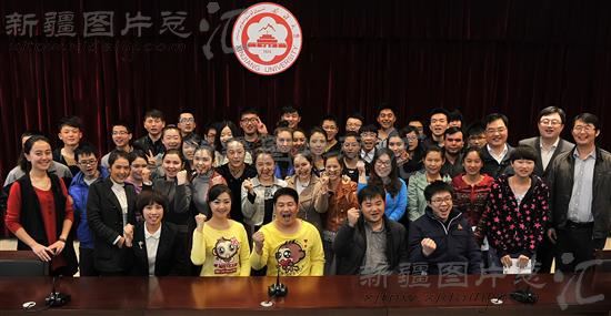 2014年3月31日,“我的中国梦——奋斗的青春最美丽”分享团成员与新疆大学学生合影留念。