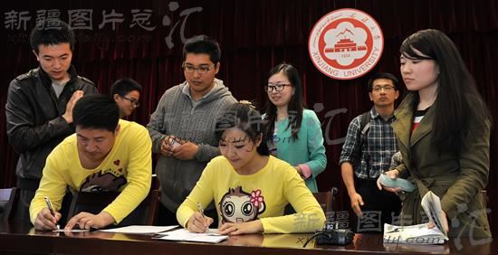 2014年3月31日,“我的中国梦——奋斗的青春最美丽”分享团成员与新疆大学学生互动。
