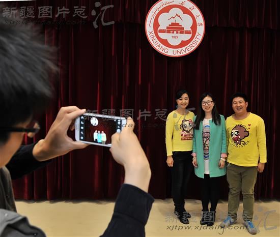 2014年3月31日,新疆大学学生与“我的中国梦——奋斗的青春最美丽”分享团成员合影留念。