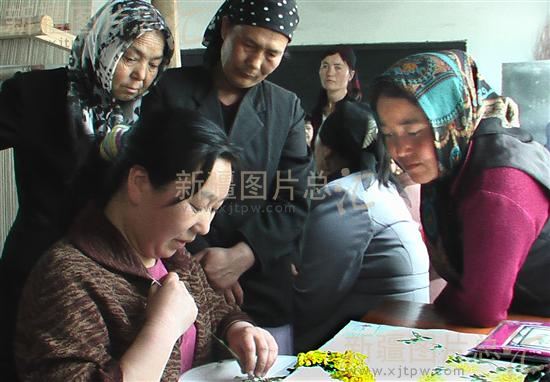 2008年4月16日,新疆阿克苏地区沙雅县沙雅镇妇联组织100余名妇女参加地毯编织、十字绣、丝带绣培训班。