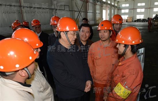 3月26日,俞正声在上海宝钢集团八钢公司喀什百万吨金属制品基地调研。