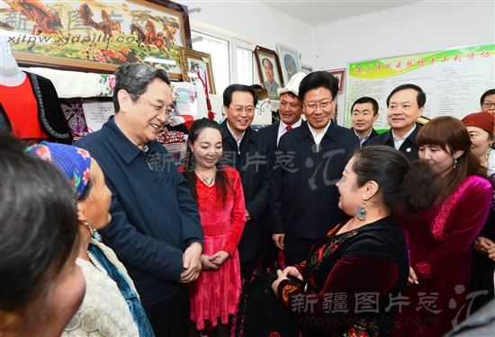 3月27日,俞正声兵团第三师托云牧场柯尔克孜族刺绣协会,了解牧区第三产业开展的情况。