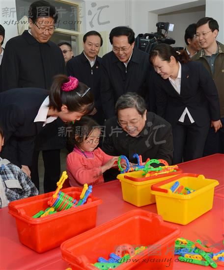 3月27日,俞正声来到兵团第三师托云牧场红军小学,了解双语教育情况。