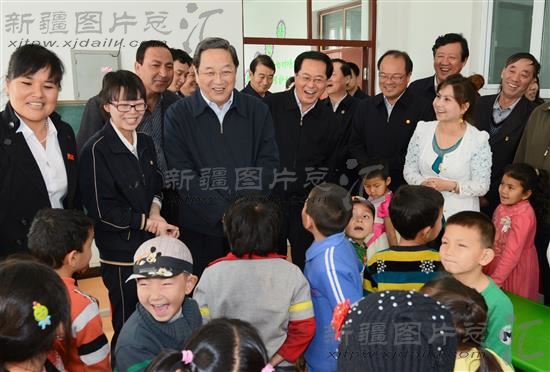 3月28日,俞正声在兵团第一师阿拉尔市托喀依乡视察双语幼儿园,了解幼儿入园与教育情况。