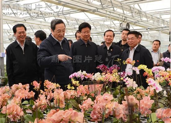 3月28日,俞正声在兵团第一师阿拉尔市国家级现代农业示范区10团“南果北种”基地调研。