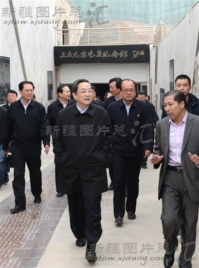 3月28日,俞正声在兵团第一师阿拉尔市参观“三五九旅纪念馆”。