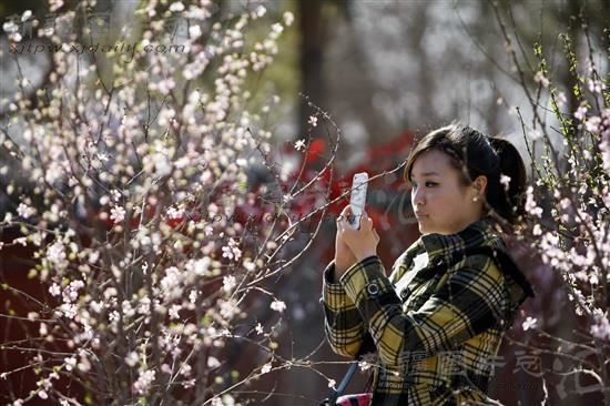随着气温回升,该公园内150多盆榆叶梅等盆栽植物竞相绽放,市民纷纷前来踏春赏花。