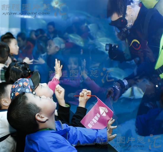 2014年4月2日,来自新疆爱心园孤独症康复中心的孩子在参观乌鲁木齐市海洋馆。