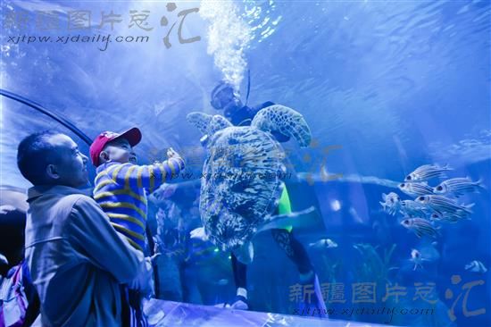 2014年4月2日,来自新疆爱心园孤独症康复中心的孩子在参观乌鲁木齐市海洋馆。