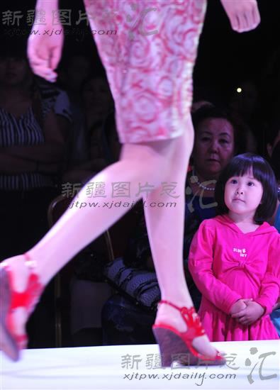 2013年9月8日,在国之桦品牌发布会上,4岁的古拉拉被T台上走秀的模特所吸引。