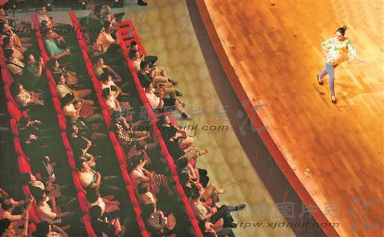 9月9日,模特在为社区居民展示民族特色服装。当晚,第二届亚欧丝绸之路服装节民族服装进社区活动在乌鲁木齐市沙依巴克区十月影剧院举行,来自疆内的30位模特为现场观众展示了150余件(套)新疆各少数民族服装。