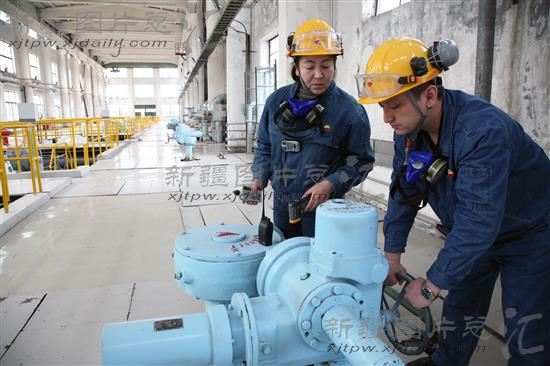 2014年4月8日,独山子石化公司乙烯厂水汽装置员工在调整循环水的流量。