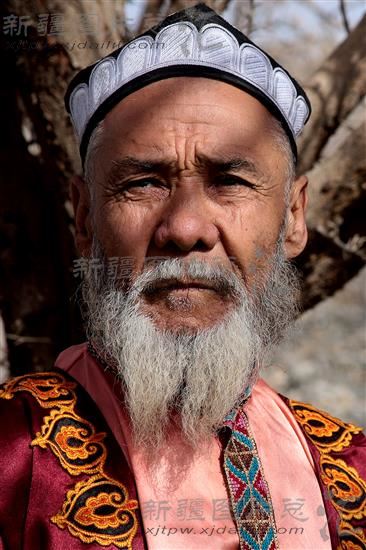 库车县郊杏花园,两名维吾尔族老艺人在杏花下琴笛共鸣。