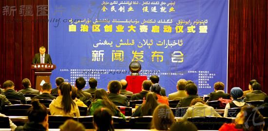 当日,由自治区统筹城乡就业和培训工作领导小组办公室、自治区人力资源和社会保障厅、自治区团委、自治区工商业联合会共同主办的以“全民创业 促进就业”为主题的自治区创业大赛,在乌鲁木齐市启动。