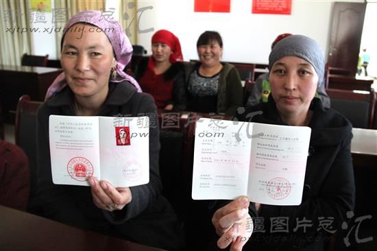 2014年4月9日,阿勒泰市巴里巴盖乡阔克尔图村的哈萨克族妇女领到了国家颁发的职业资格证书。