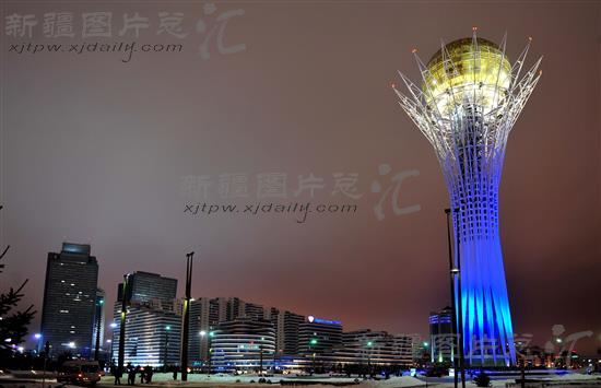 阿斯塔纳夜景。(2014年3月11日摄)