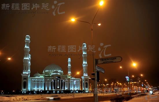 中亚最大清真寺——“努尔阿斯塔纳”清真寺(2014年3月11日摄)。该寺室内室外共可容纳5000人聚礼。